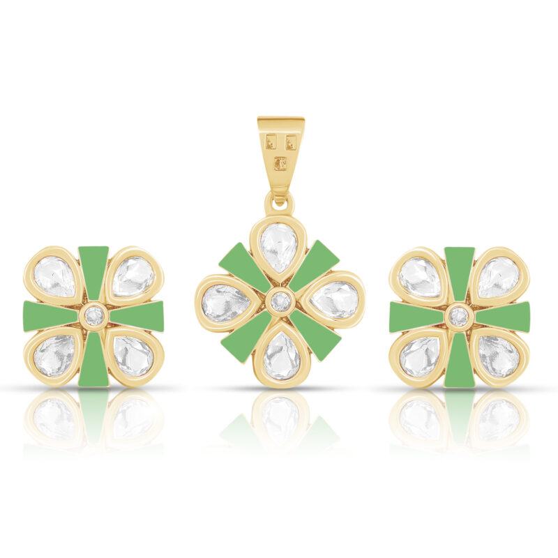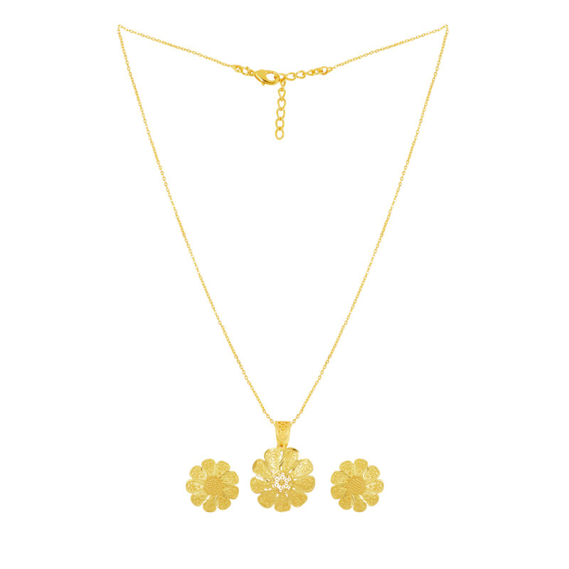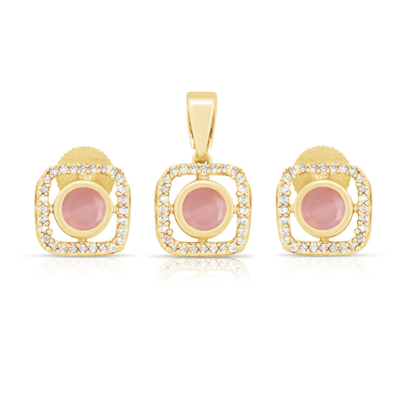 Blush Bloom Teardrop Pendant Set in Gold Finish