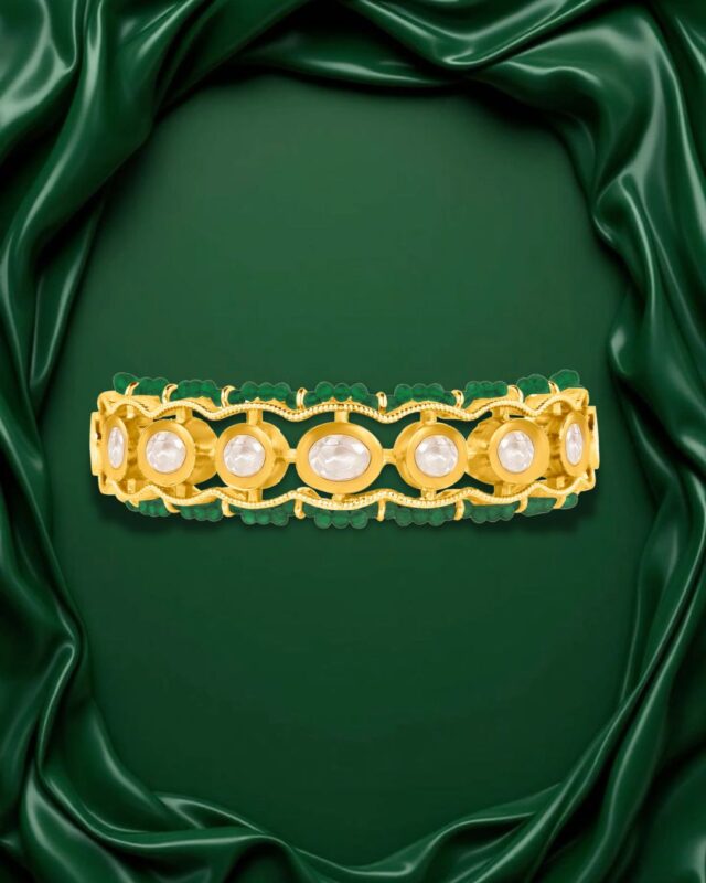 Pearl & Bottle Green Beaded Moti Kada
