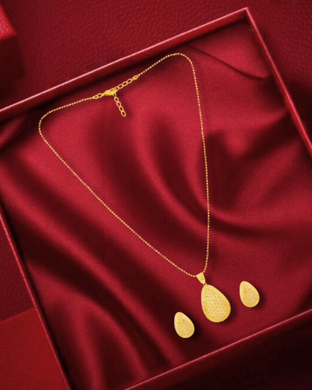 Antique Gold Pendant Set with Stud Earrings