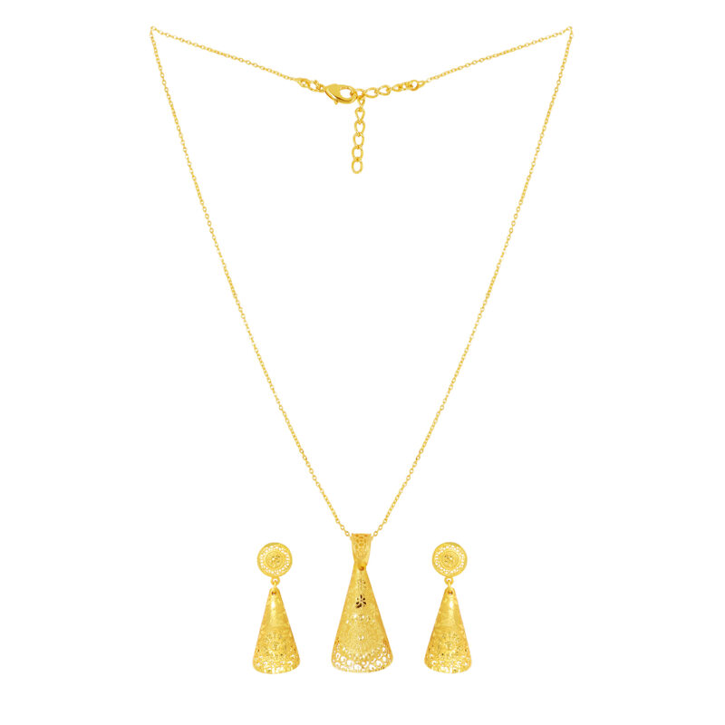Cone Drop Antique Gold Pendant Set with Circular Tops