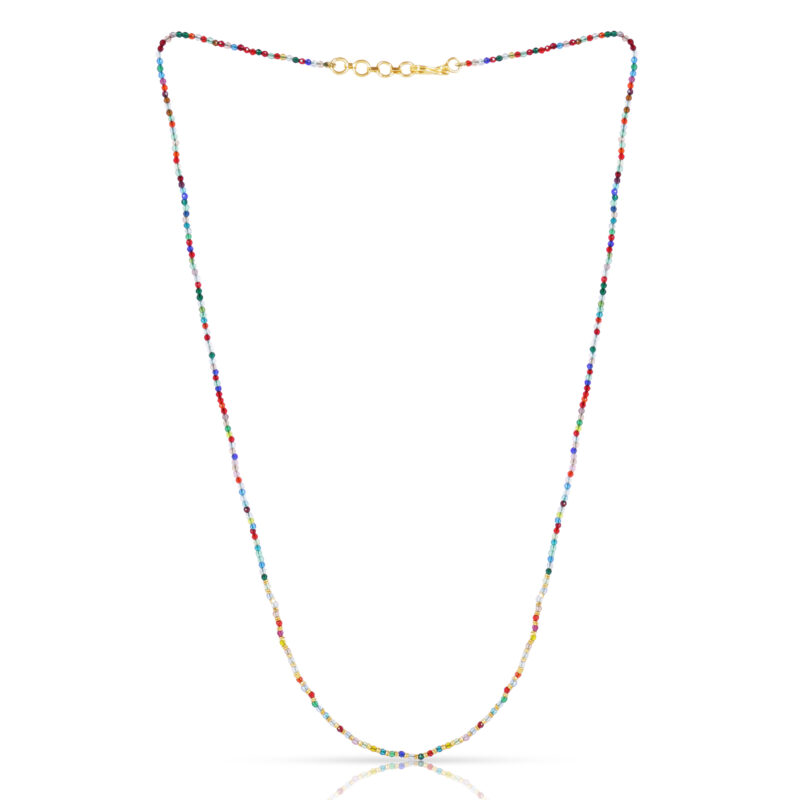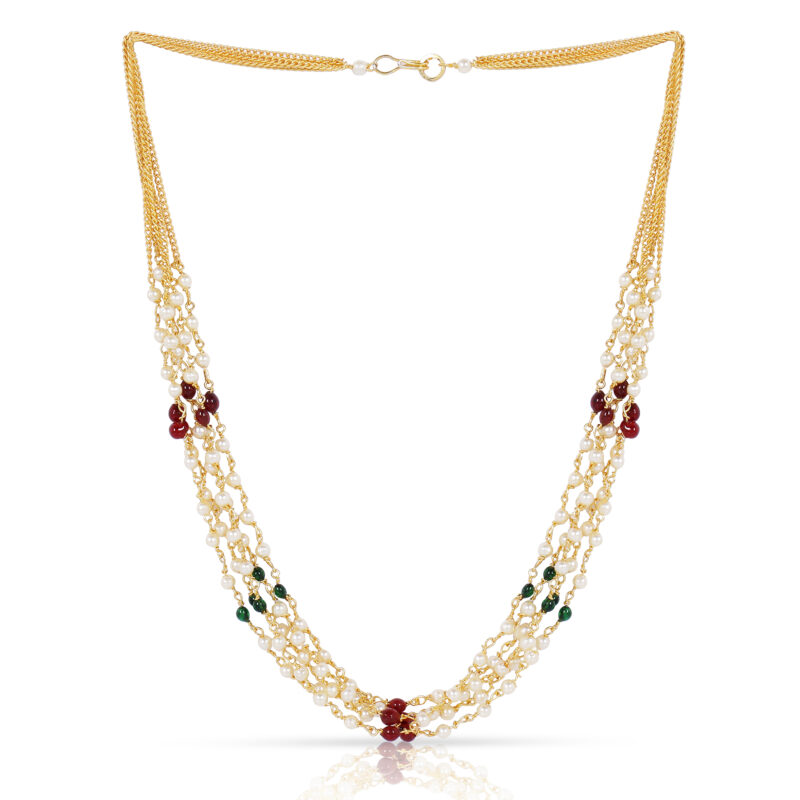 Multi-Strand Pearl Necklace with Red & Green Beads