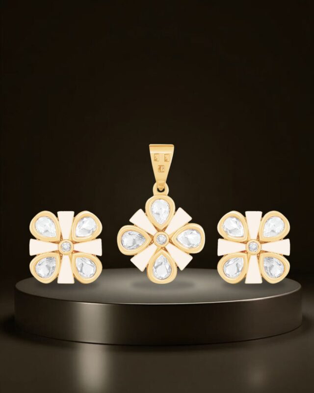Blush Petal Radiance Pendant Set in Gold Finish