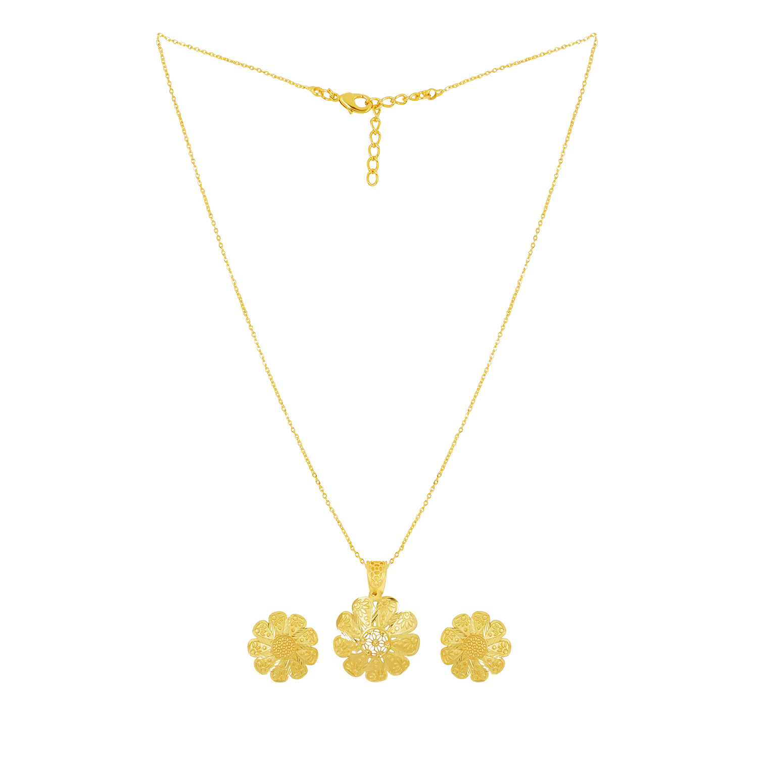 Antique Gold Pendant Set with Stud Earrings
