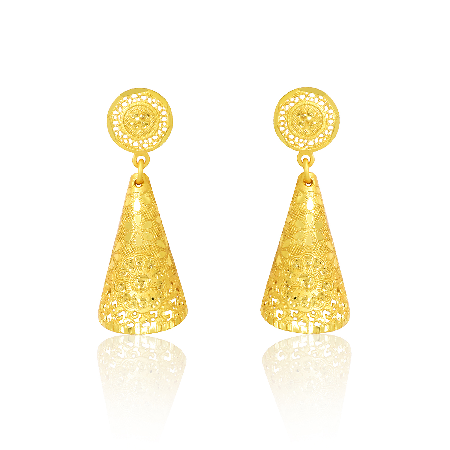 ✨ Picture yourself at a family gathering, a wedding, or even a festive celebration – the antique gold shimmer catching the light as you move, turning every glance into admiration. The cone drop design sways gently, adding a playful charm, while the circular tops keep the look grounded in timeless tradition.