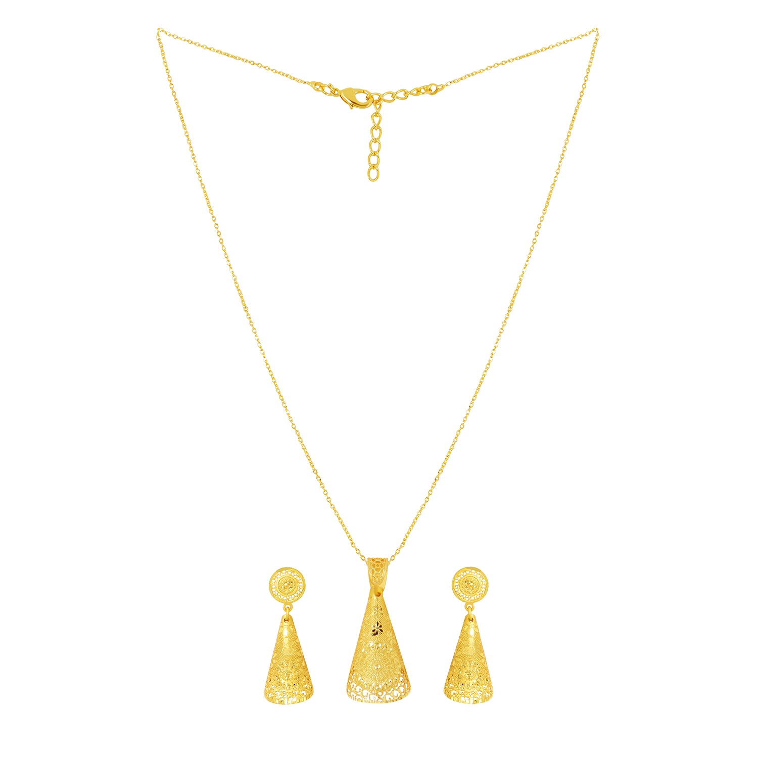 Celebrate tradition with a touch of sophistication through our Cone Drop Antique Gold Pendant Set with Circular Tops. 🌸