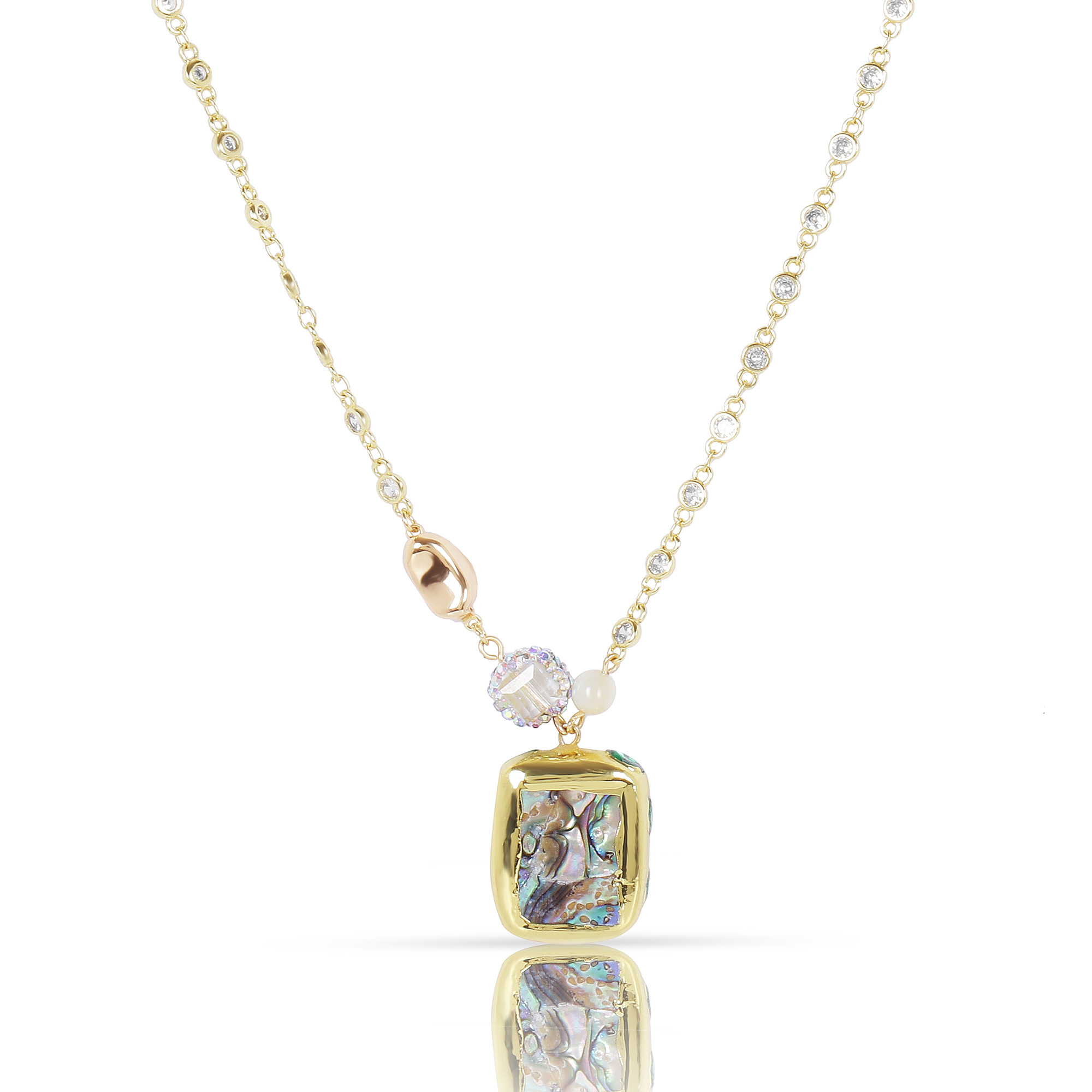 Shimmering with the hues of the sea, the Crystal Chain with Iridescent Shell Pendant brings a touch of coastal elegance to your jewelry collection. 🌊🐚
