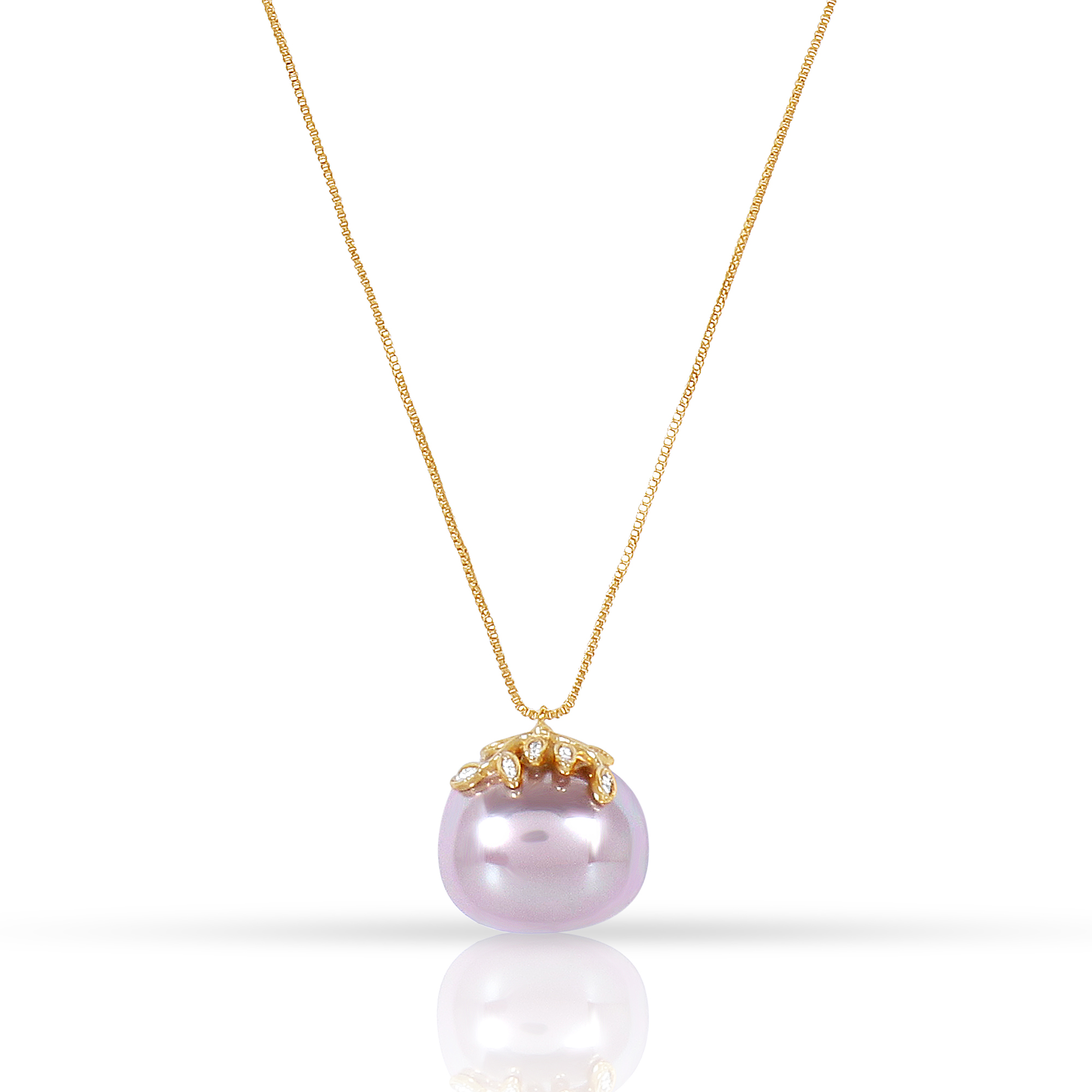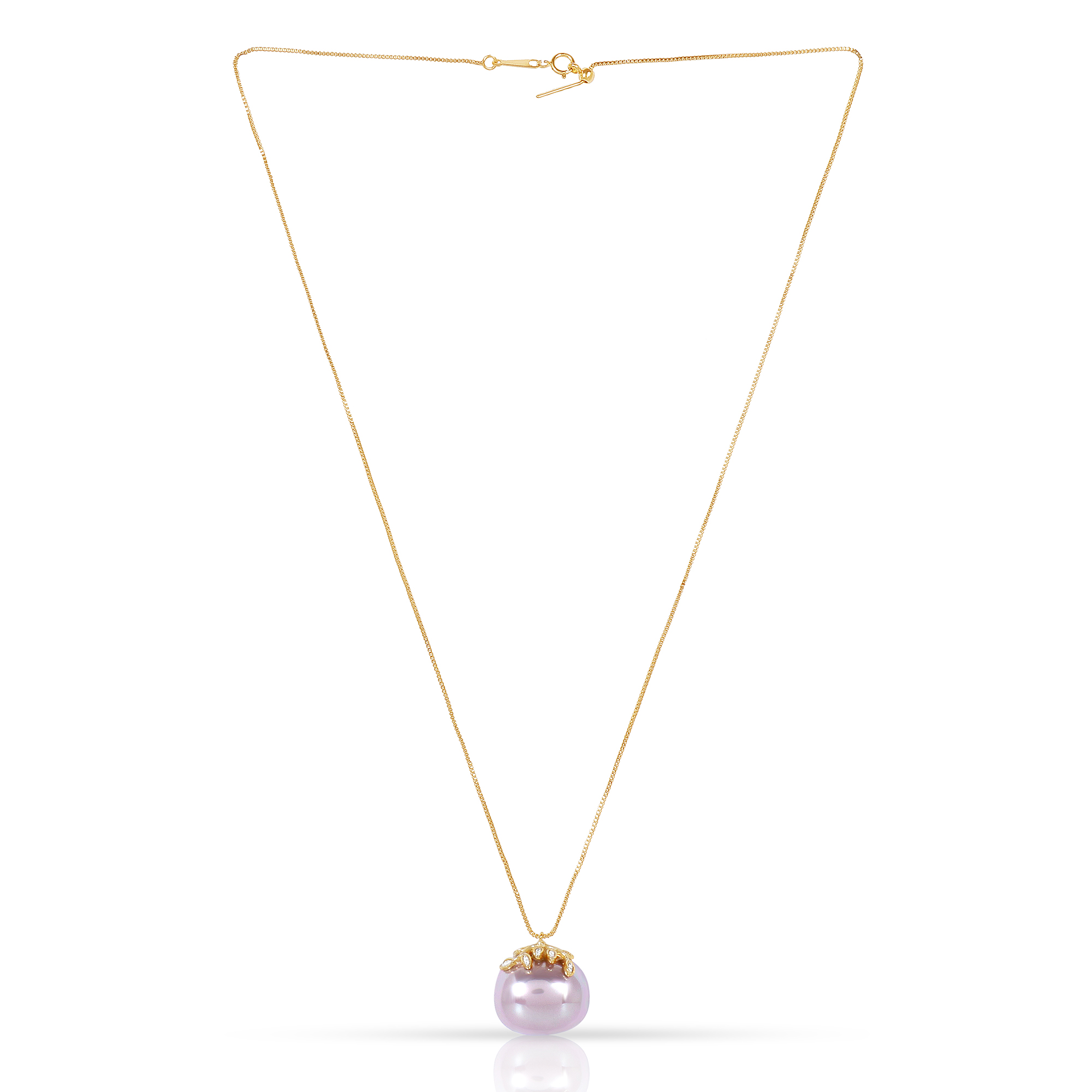 🌟 Crafted with a premium Elegant Gold-Plated Elegant Gold-Toned Chain with a Single, Large Lavender-Hued Pearl Pendant along a Delicate, Ornate Cap Adding a Touch of Timeless Sophistication✨