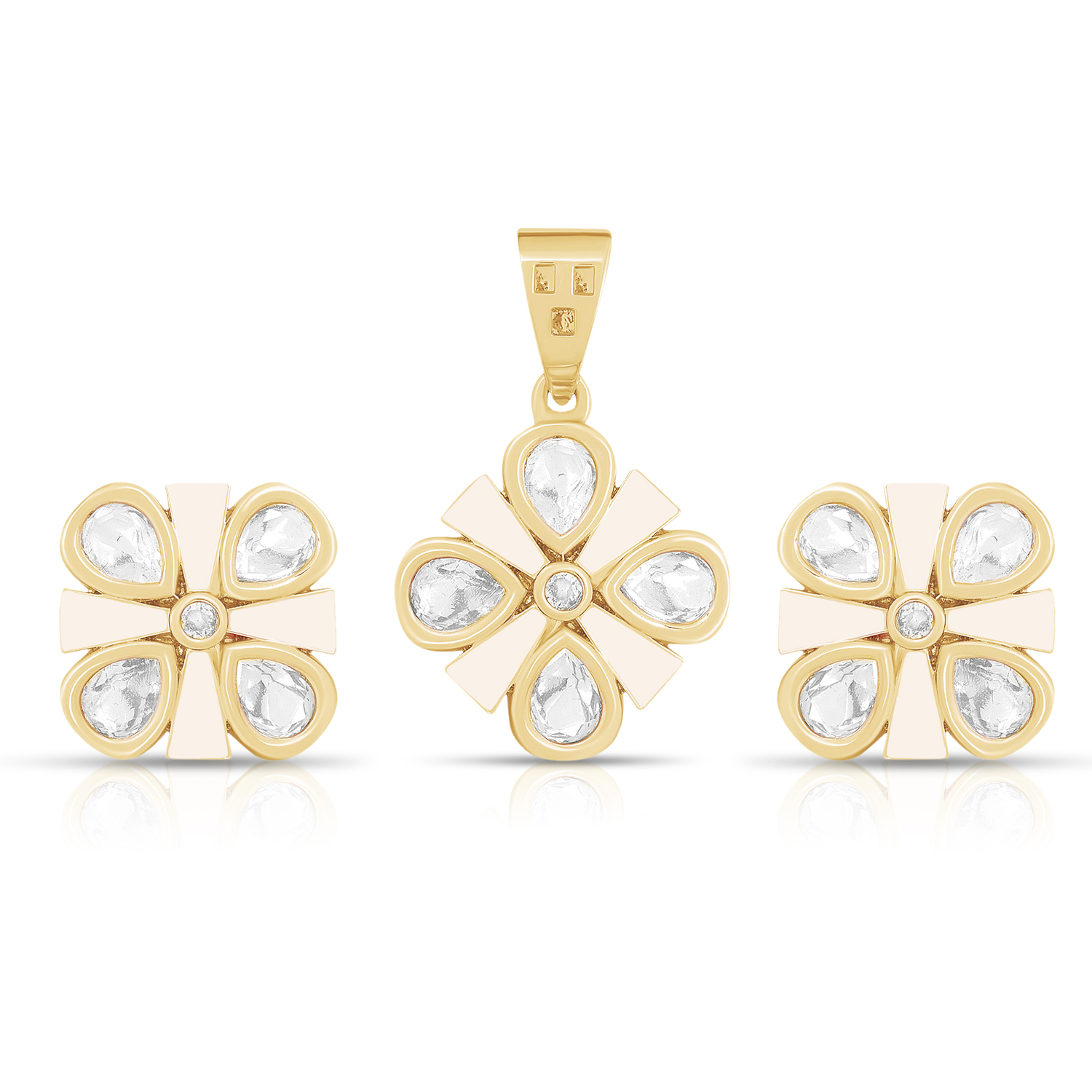 Blush Petal Radiance Pendant Set in Gold Finish