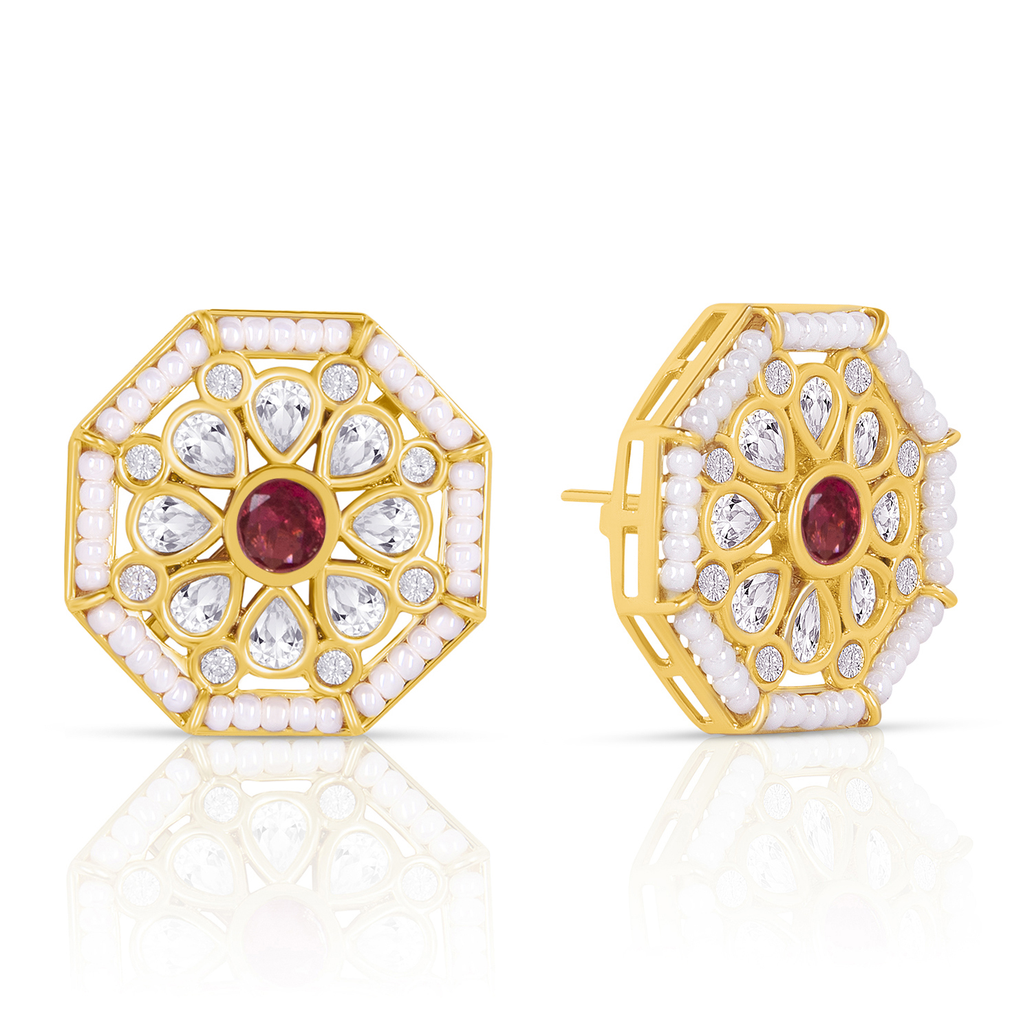 Some jewelry pieces are made to make a statement, and these Octagon Stud Earrings with Ruby Red Center do exactly that.
