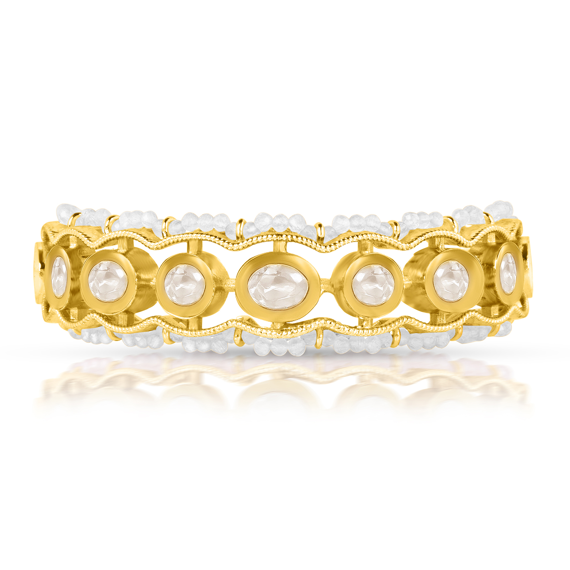 🌟 Crafted with a premium Gold-Plated Bangle With Oval White Stones and Delicate White Beadwork. A Stunning Accessory for Weddings and Festive Wear✨