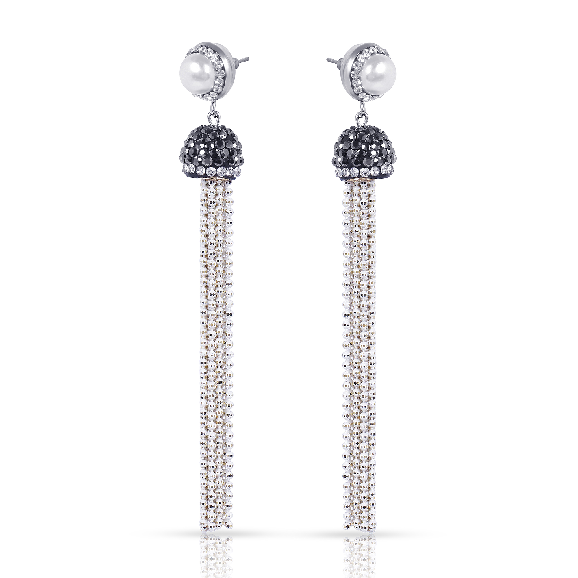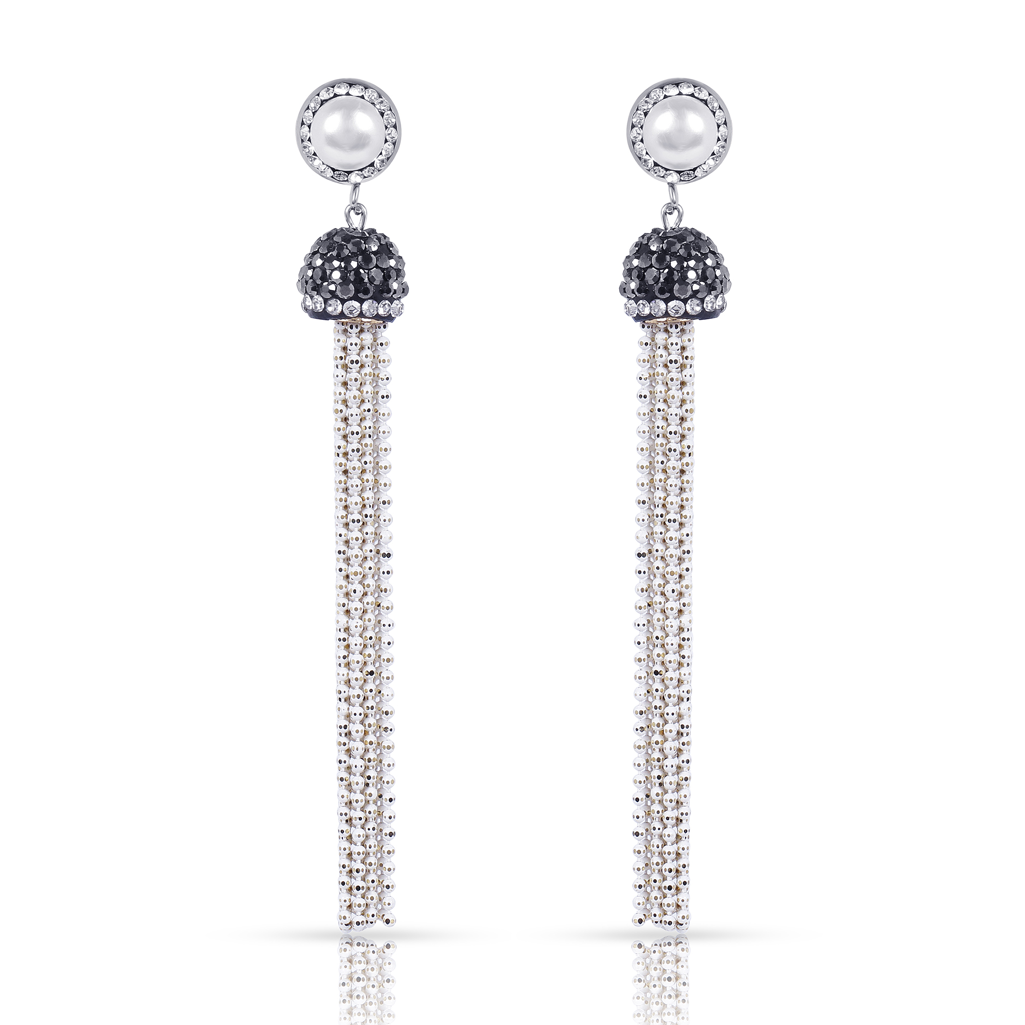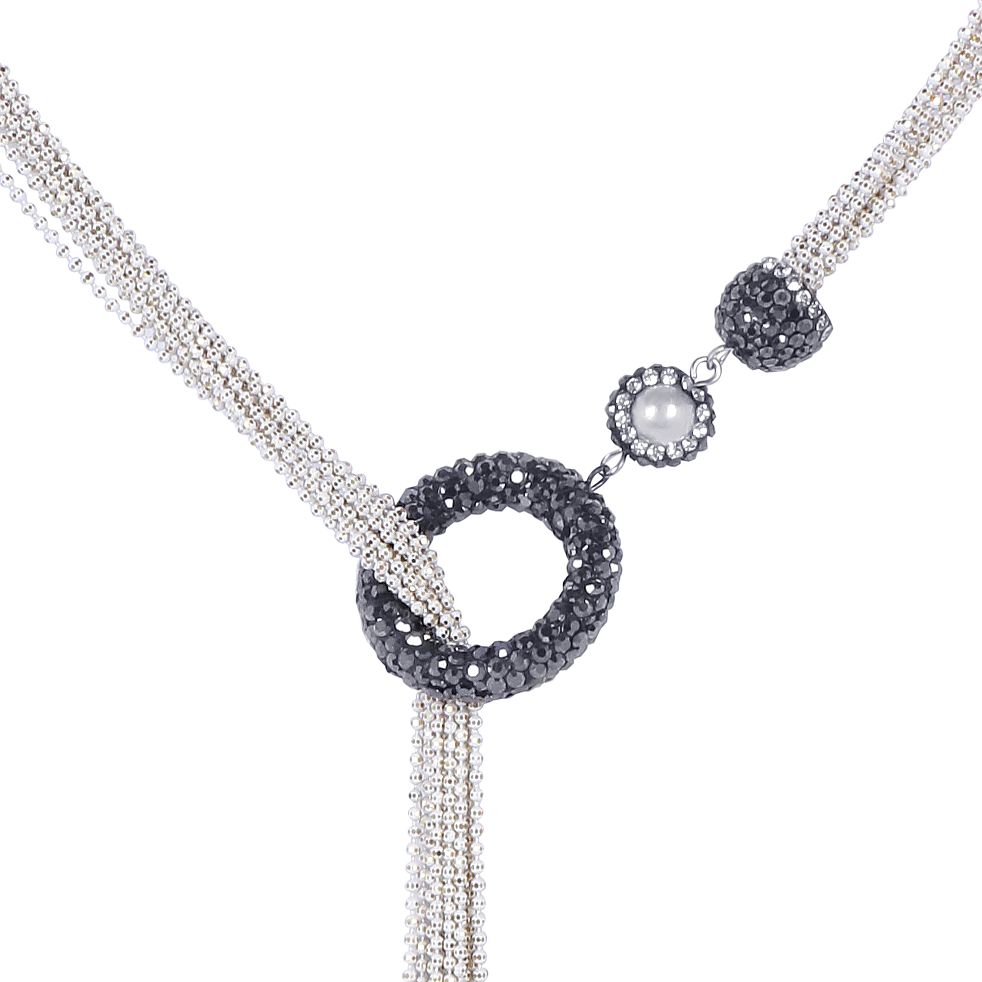 🌟 Crafted with a premium Elegant – This Striking Necklace Set Features Delicate Silver-Toned Chains Arranged in an Elegant Y-Shape, Anchored by Sparkling Crystal-Studded Rings. Paired with Dramatic Matching Tassel Earrings, It’s Perfect for Making a Bold, Sophisticated Impression✨