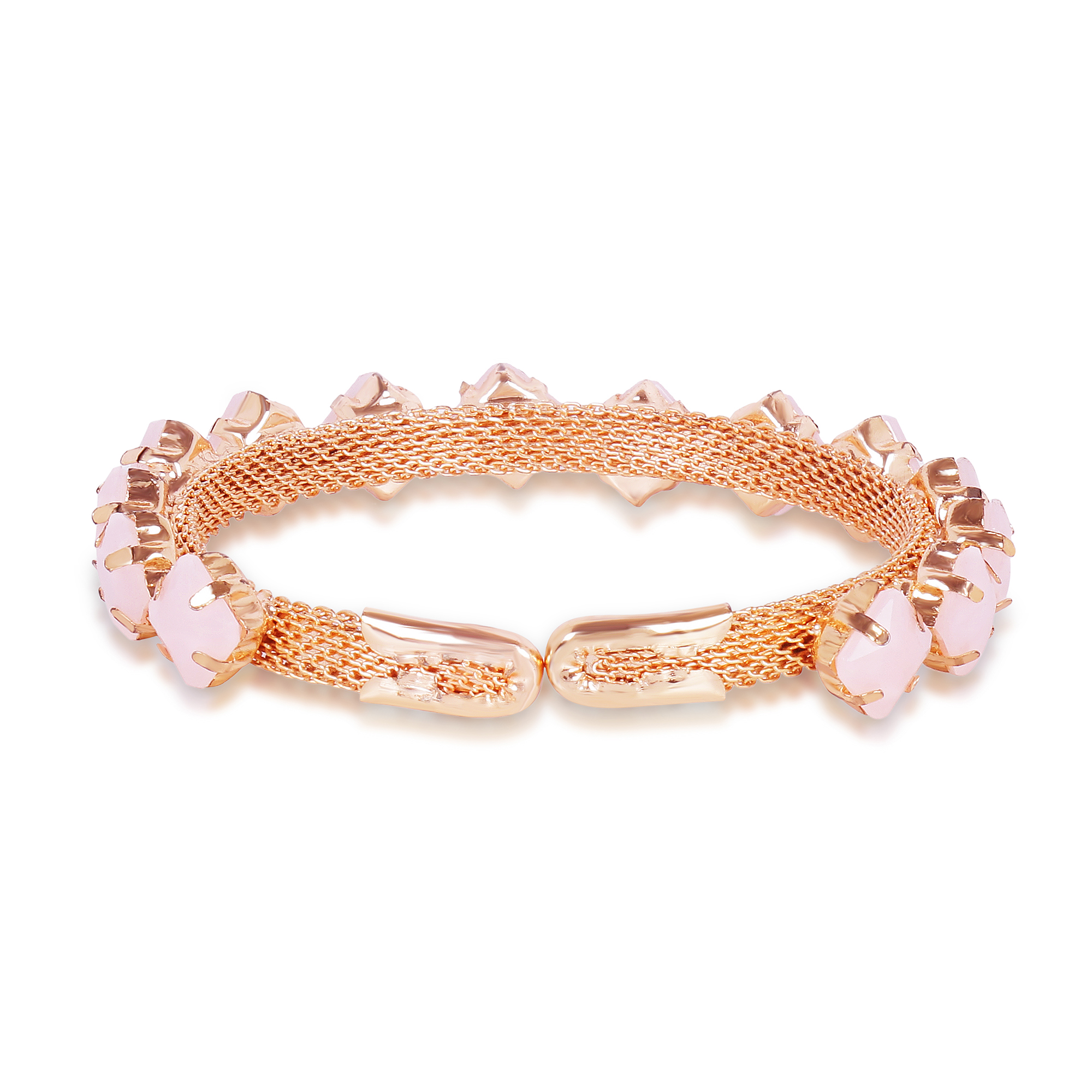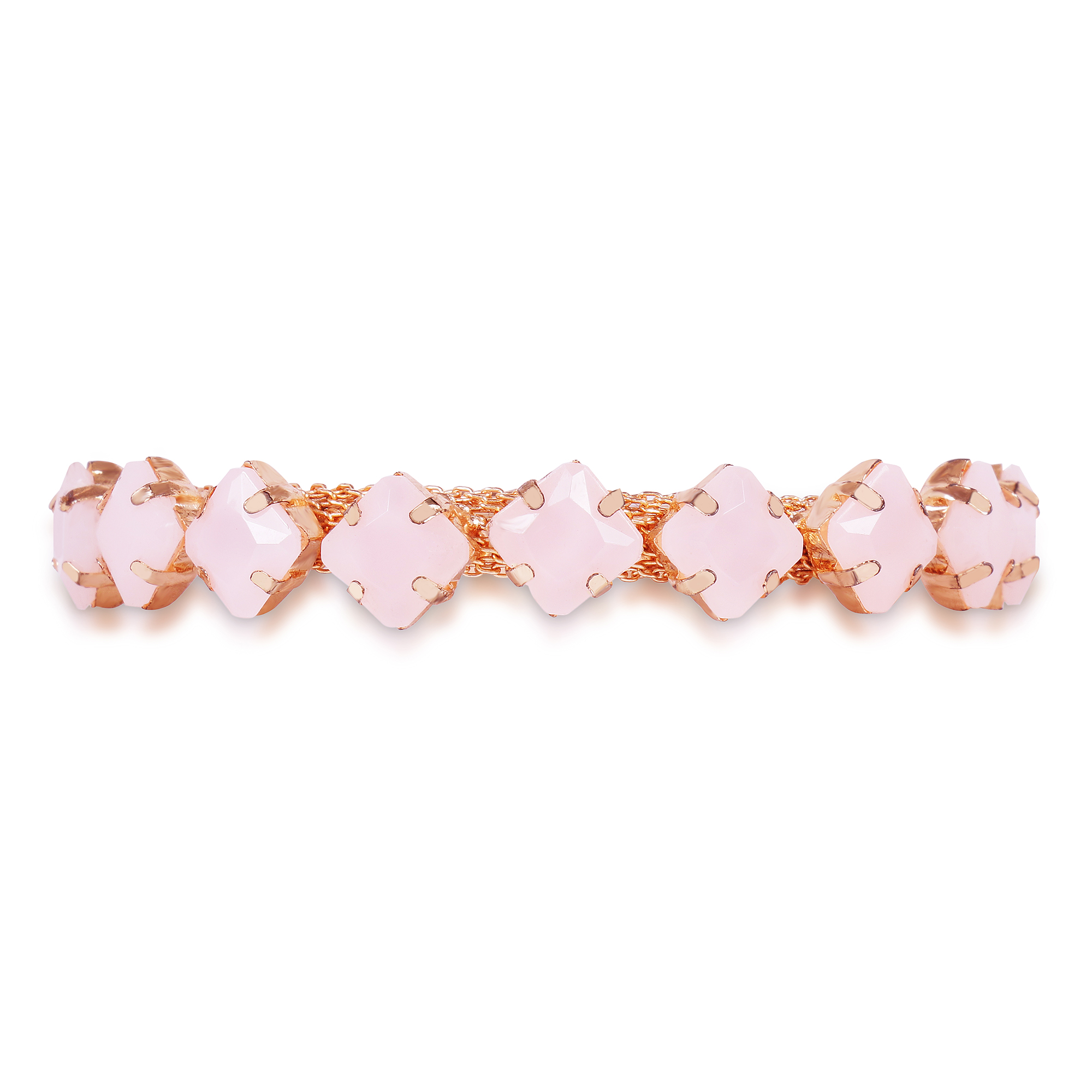🌟 Crafted with a premium Elegant – This Eye-Catching Rose Gold Bracelet Features a Mesh Band Accented with Soft Baby Pink Clover-Shaped Stones. The Semi-Open Cuff Design Combines Charm with Comfort, Making It a Graceful Addition to Both Ethnic Wear and Western Outfits✨