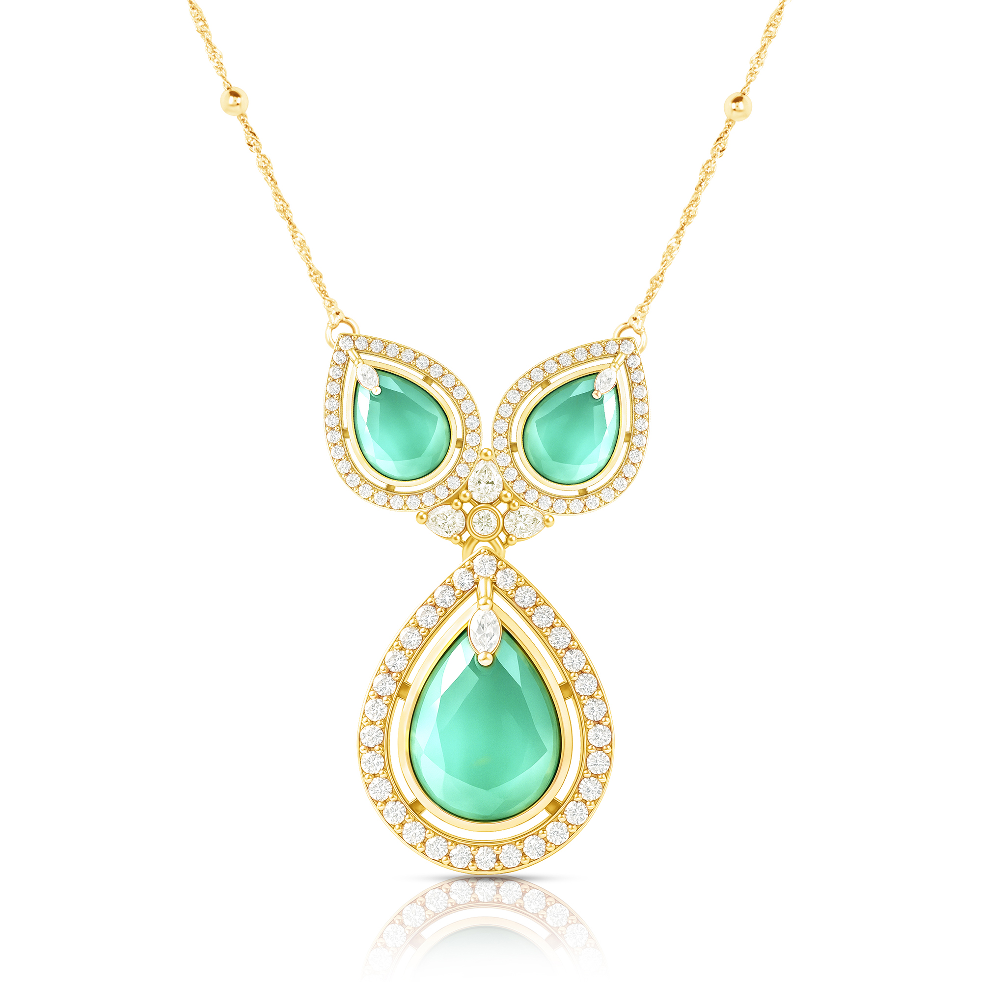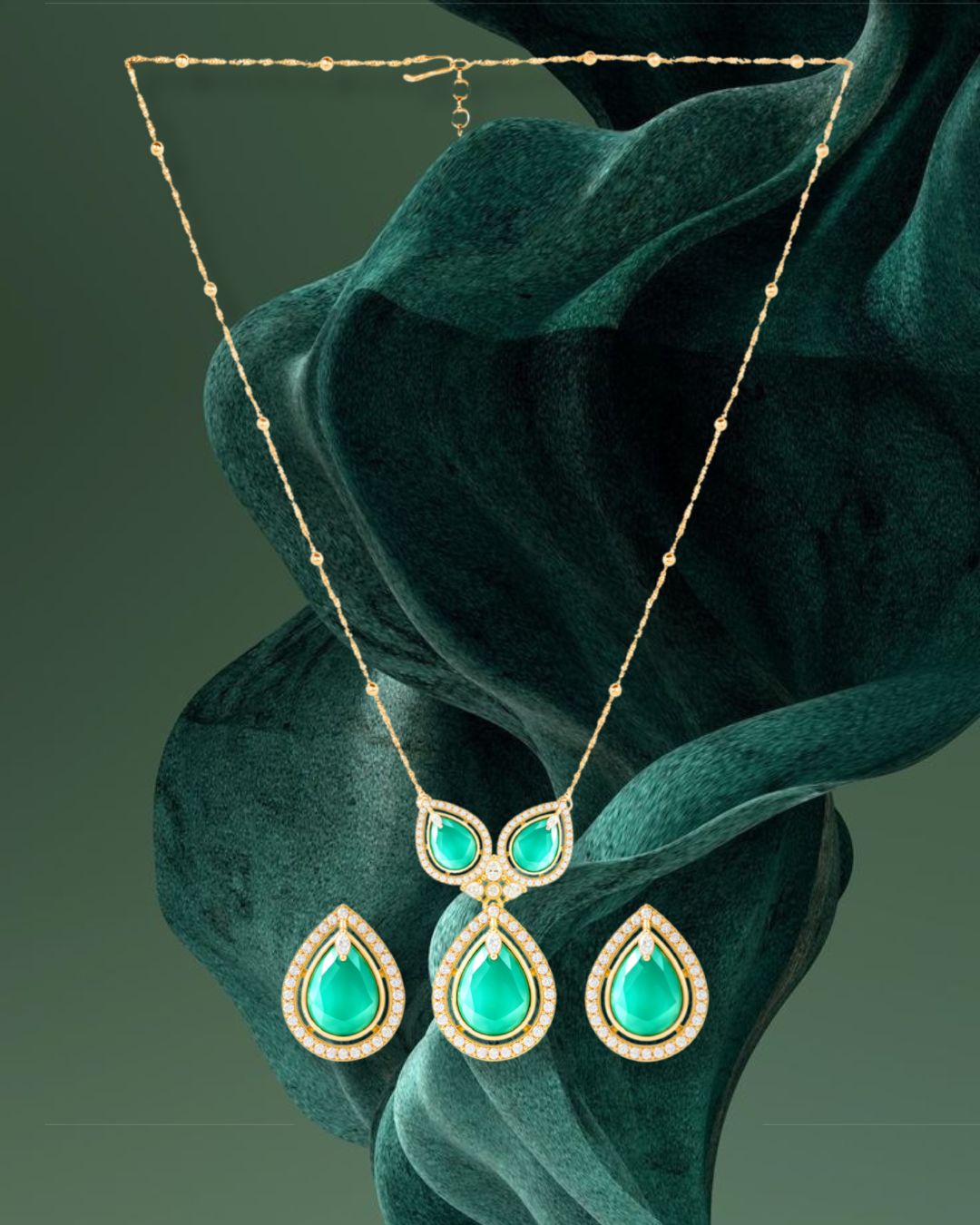 Like the calm waves of the ocean meeting the morning light, the Sea Green Dewdrop Chain Pendant & Earring Set embodies freshness, serenity, and elegance.