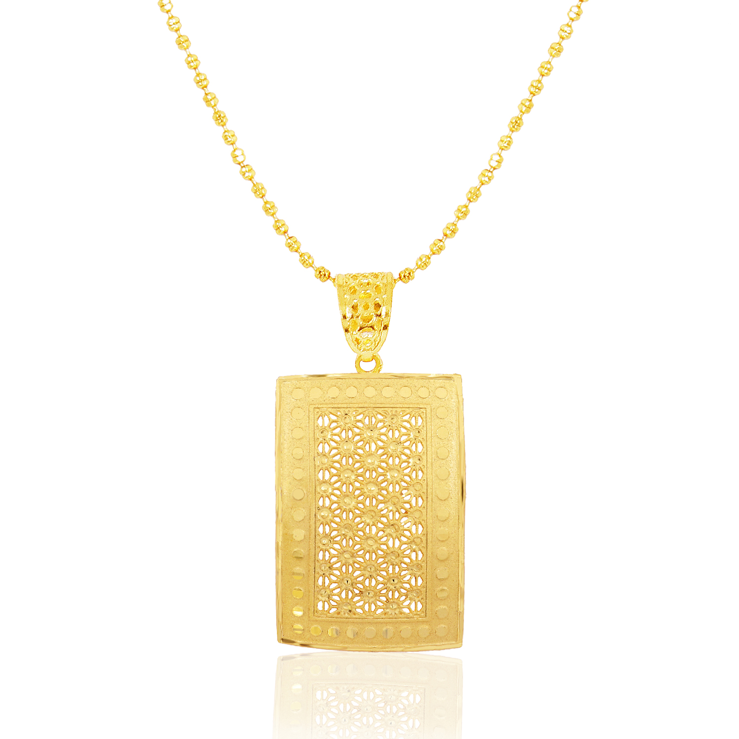 ✨ Picture yourself at a business meeting, a dinner date, or a festive gathering – the rectangular pendant gleaming softly, adding sophistication without overpowering your style. Its clean lines and minimal design make it versatile enough to complement both Western outfits and traditional attire.